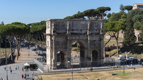 景點(diǎn) 君士坦丁經(jīng)常被認(rèn)為是第一位皈依基督教的皇帝,但是在這座在315年為他而建的拱門上找不到任何基督教的形象。他的洗禮儀式僅是在22年后在他臨終之際舉行的。盡管君士坦丁拱門建造得格外雄偉氣派,它卻沒有自己的獨(dú)特風(fēng)格。 這座拱門上面的絕大多數(shù)裝飾品其實(shí)都是取白于以前的皇帝們所建造的各種建筑物,這也表明羅馬的藝術(shù)已經(jīng)開始走下坡路了。所以說,處在拱門上端(頂閣)兩側(cè)的那8座矩形浮雕(rectangular rellefs)原先是一座紀(jì)念馬庫斯奧里列阿斯(161—180)的建筑物上的裝飾,只是這位皇帝的頭像被重新雕刻成了君士坦丁的樣子(還有3座浮雕和它們屬于同一系列,現(xiàn)存卡匹托爾博物館。它們清楚地顯示著馬庫斯·奧里列阿斯皇帝的樣子)。