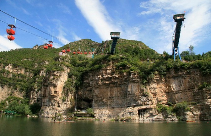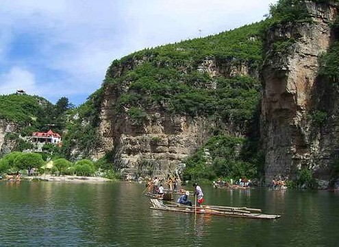 十渡風景區(qū)  位于北京市房山區(qū)西南,是中國北方唯一一處大規(guī)??λ固貛r溶地貌。十渡風景區(qū)是中國國家AAAA景區(qū)和中國國家地質公園。十渡風景區(qū)是大清河支流拒馬河切割太行山脈北端而形成的一條河谷,全程約20公里。由于在歷史上這條河谷中一共有十個渡過拒馬河的擺渡渡口,故而得名“十渡”。