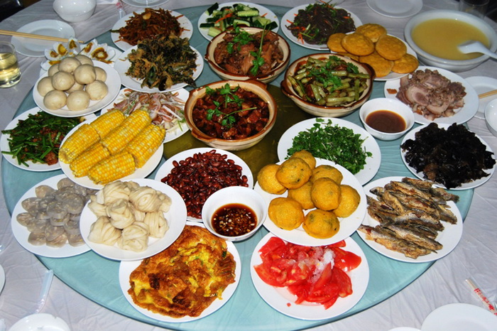 主食:貼餅子、家常餅、蒸卷子、豆米飯、蒸餃、白薯 玉米粥或豆面湯