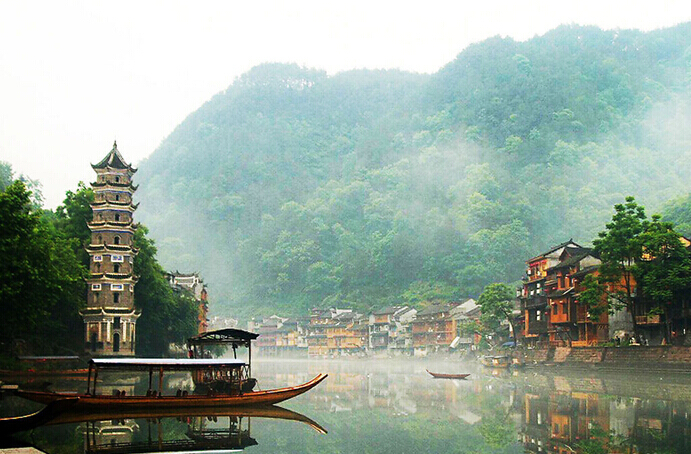 到達張家界??照{BUS前往人杰地靈、民族風味濃郁的鳳凰古城(約4.5小時車程)鳳凰古城,沈叢文故居、熊稀齡故居、楊家祠堂、東門城樓、沱江泛舟、虹橋風雨樓、萬壽宮、崇德堂、古城博物館。觀沱江風光、萬名塔、奪翠樓、沙灣吊腳樓群等景點,在鳳凰民俗園自由活動1小時。夜晚漫步美麗的沱江。放許愿燈,為自己和親人祈福。晚餐品嘗鳳凰特色血粑鴨。