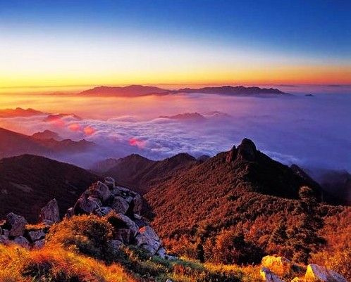 霧靈山國家森林公園  游覽龍?zhí)毒皡^(qū):金雕崖、羚羊界、天然白樺林、將軍峰、潑墨峰、拇指峰、回音壁、清風(fēng)界、龍?zhí)镀俨肌乜谄俨?、神牛潭,山澗溪水千回萬轉(zhuǎn),濤聲震耳。景區(qū)內(nèi)樹木高大,遍布山谷,遮天蔽日,時(shí)有野獸出沒。由于植被茂盛,空氣負(fù)氧離子含量高,相對濕度大,氣溫舒適,清新涼爽,環(huán)境幽野,辟為“避暑養(yǎng)生游專線”活動(dòng)4小時(shí)。如增加2小時(shí)(換乘景區(qū)內(nèi)小車費(fèi)用需自理)可登主峰極頂海拔2118米,燕山山脈主峰。登高遠(yuǎn)望,一覽眾山小,密云水庫盡收眼底。游覽歪桃峰景區(qū):霧靈云海、霧靈日出、霧靈佛光、空中花園、七盤井、登高攬勝等。每當(dāng)云霧涌起之時(shí),海拔1800米以下彌漫在云霧之中,云鋪成路,人行在天,如入仙境