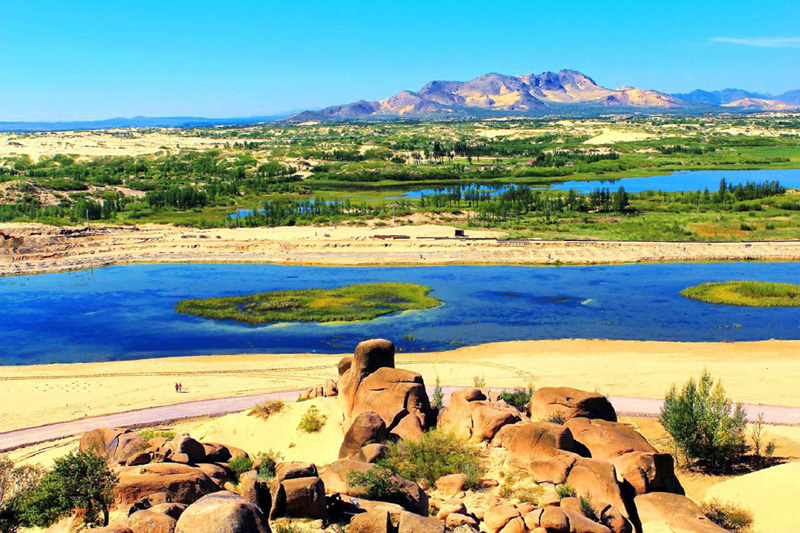 早餐后乘車赴巴林右旗大板鎮(zhèn)的【巴林奇石館】,巴林奇石館為珍藏和展示巴林石精品之地,館內(nèi)現(xiàn)珍藏巴林雞血石、巴林福黃石、巴林凍石、巴林彩石、巴林圖案石及巴林工藝精品兩千余件。其中**引人注目的是極品“巴林雞血石王”,此石墨赤分明,血色鮮艷欲滴,絕世無(wú)雙,被視為鎮(zhèn)館之寶,將永藏館內(nèi);午餐乘車赴中華第一龍的故鄉(xiāng)、有八百里瀚海之稱的【玉龍沙湖勃隆克沙漠景區(qū)】, 乘景區(qū)小交通抵達(dá)沙漠腳下,登“紅山文化尋根之旅”木棧道,連綿數(shù)千米的實(shí)木棧道,40處巨型紅色怪石風(fēng)光,彰顯大自然神奇?zhèn)チΦ年幨?、?yáng)石、石長(zhǎng)城、紅山女神像等等,真正讓游人感受到“尋找中華文明源頭,探尋美麗生命真諦”的文化體驗(yàn)式旅游。自由活動(dòng),夢(mèng)幻沙漠所帶來(lái)的無(wú)限驚奇,感受沙漠的自然風(fēng)光。晚餐后入住賓館。