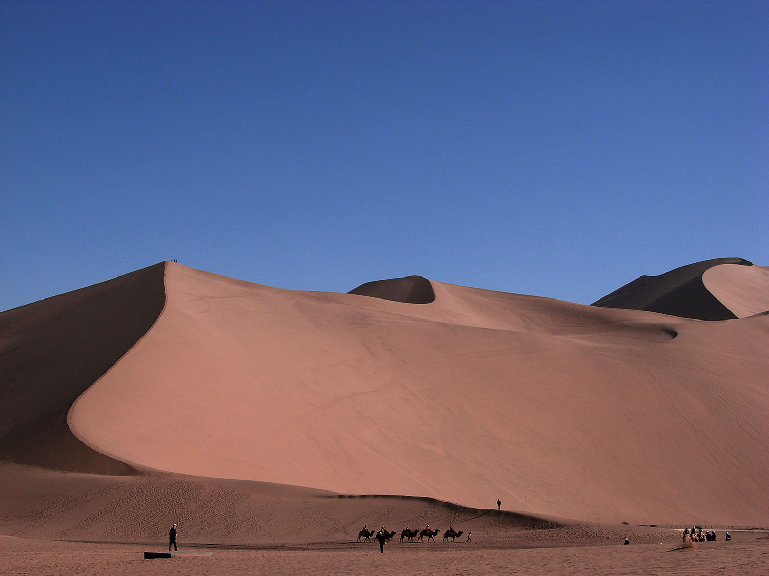 早餐后乘車赴敦煌參觀世界藝術寶庫,中華石窟之瑰寶---莫高窟。它是我國規(guī)模**大,內(nèi)容**豐富的石窟群,也是世界藝術史上的奇跡。又名“千佛洞”, 是現(xiàn)今世界上規(guī)模**宏大、歷史**久長、內(nèi)容**豐富、保存**良好的佛教遺址,被聯(lián)合國教科文組織列入世界文化遺產(chǎn)保護名錄。午餐后游覽以沙漠奇觀著稱的鳴沙山、月牙泉。鳴沙山整個山體由細米粒狀黃沙積聚而成,狂風起時,沙山會發(fā)出巨大的響聲,輕風吹拂時,又似管弦絲竹,因而得名為鳴沙山。有兩個奇特之處:人若從山頂下滑,腳下的沙子會嗚嗚作響;月牙泉因泉形酷似一彎新月,故名月牙泉,晚餐后入住酒店。