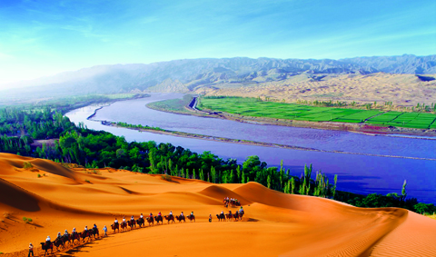 早餐后乘車赴中衛(wèi),參觀中國**美五大沙漠之一的國家AAAAA級景區(qū)——【沙坡頭】(游覽不少于2小時),沙坡頭集大漠、黃河、高山、綠洲為一體,既有西北風光之雄奇,又兼江南景色之秀美,自然景觀獨特,人文景觀豐厚,被旅游界專家譽為世界壟斷性旅游資源??腿丝勺再M乘黃河上**老的交通工具羊皮筏子漂流黃河,騎駱駝暢游沙海,了解治沙工程等項目,之后乘車返回銀川,乘飛機的客人前往機場,乘飛機返回北京結(jié)束愉快的旅程!