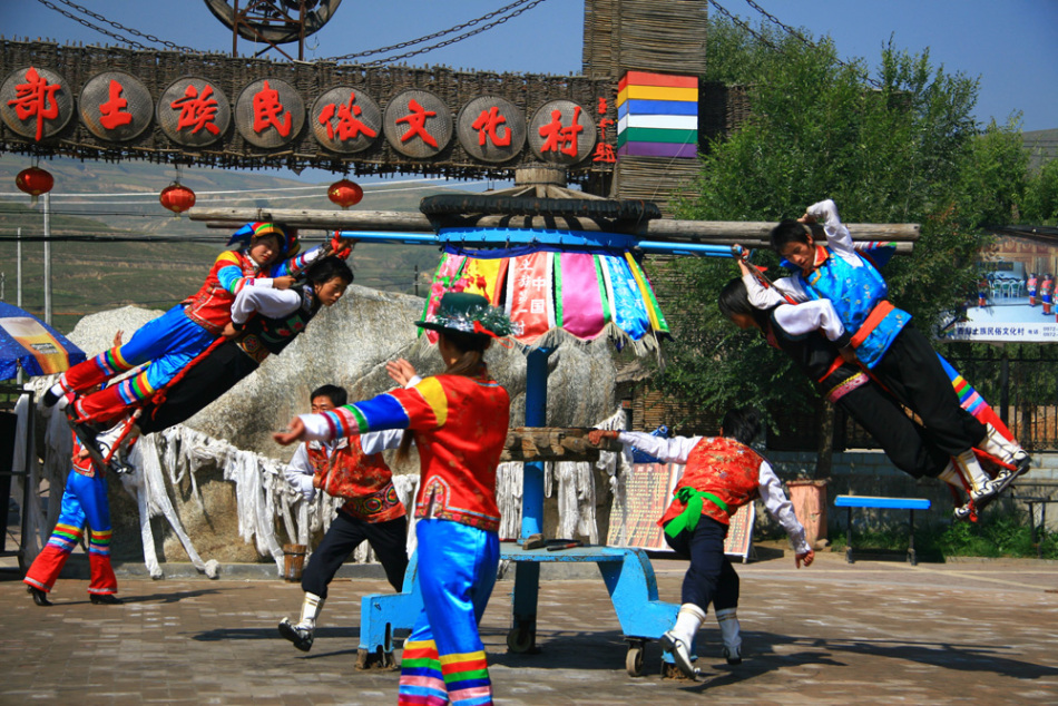 早抵達(dá)西寧后導(dǎo)游舉牌接站后乘旅游大巴前往青海唯有的少數(shù)民族村落――【互助土族風(fēng)情園】(游覽約50分鐘)觀賞富有民族特色的土族歌舞《安昭舞,輪子秋、以及觀賞土族歌舞和了解土族文化》以及和當(dāng)?shù)赝磷灏⒐煤染茖?duì)唱青海民歌。