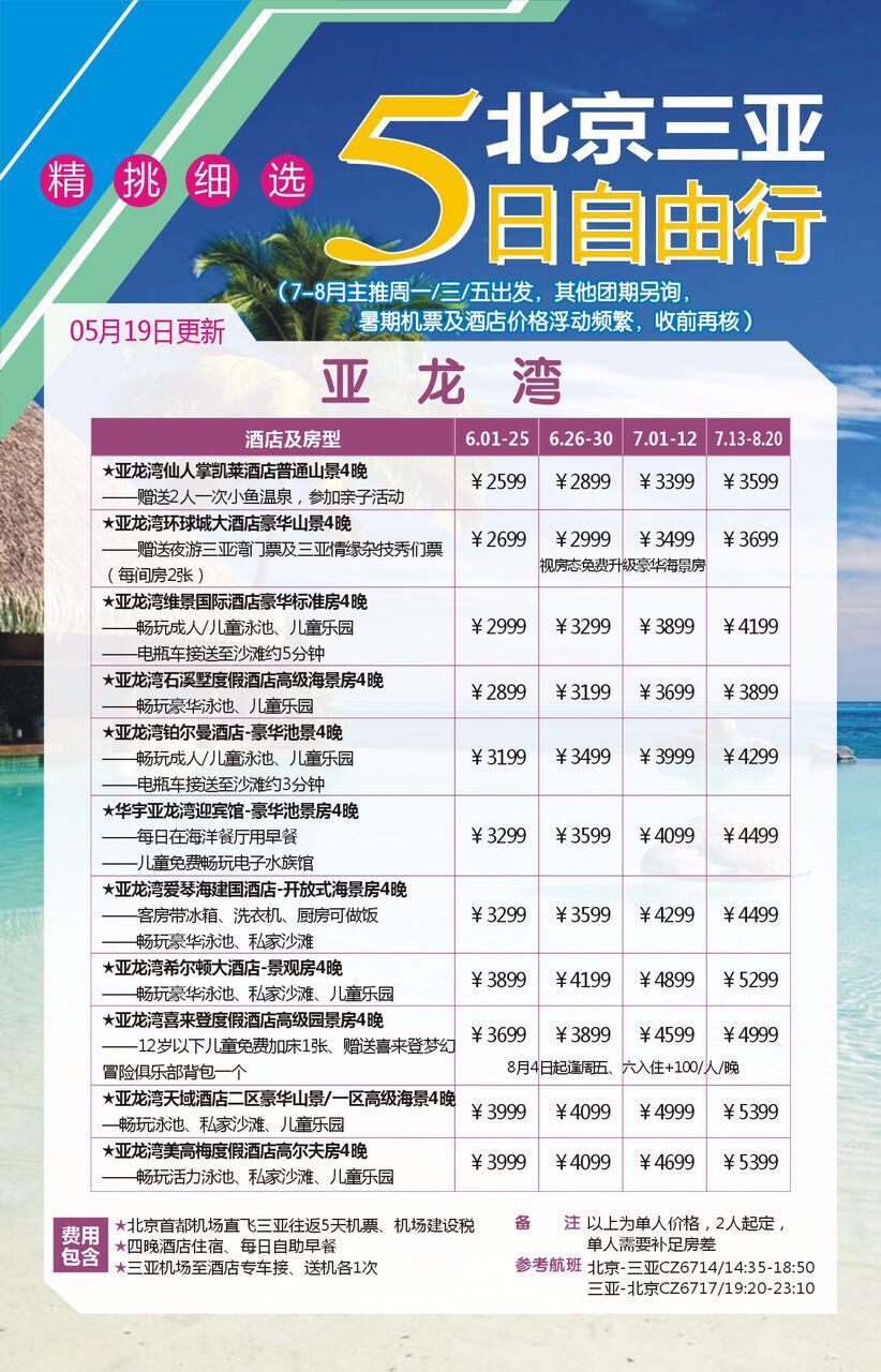 三亞自由行計(jì)劃<機(jī)票+酒店>