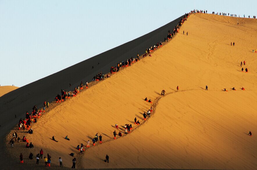早抵達柳園鎮(zhèn),接火車乘車赴敦煌市,中餐后參觀世界文化遺產(chǎn)、世界歷史上**悠久佛教藝術(shù)寶庫--莫高窟(景區(qū)講解,游覽約2.5小時) 天衣飛揚,滿壁風動的飛天,絢麗安詳?shù)姆鹜?,看著這些精美的壁畫,就像走進了燦爛輝煌的中華藝術(shù)殿堂。后游覽【鳴沙山月牙泉 (游覽2小時左右): 徒峭的沙嶺蜿蜒起伏,悠揚的沙漠駝鈴訴說塵世的遠古變遷,神奇的地貌造就了數(shù)千年“沙不添泉,泉不枯竭,泉清如鏡,沙泉相依”的自然奇觀。