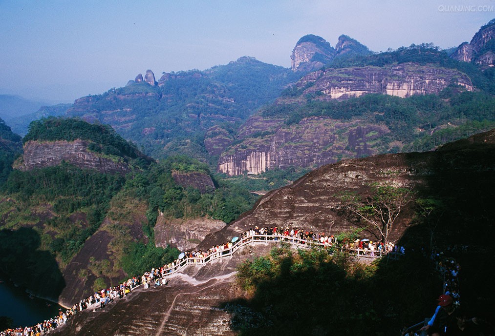 游覽武夷第一圣境【天游峰】(約3小時(shí))云窩、御茶園遺址、茶洞、小一線天、接筍峰、隱屏峰、仙浴潭、曬布巖、一覽亭、水月亭,【九曲溪漂流】觀賞九曲兩岸綺麗風(fēng)光,及懸崖絕壁上遺留“架壑船棺”、虹橋板,上岸游覽武夷宮、仿宋古街、三清殿、朱熹紀(jì)念館、名人紀(jì)念館,晚品嘗武夷山特色風(fēng)味餐農(nóng)家宴