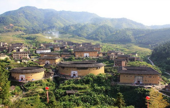 乘車約3.5小時赴龍巖,【永定高北土樓群一日游】“高四層,樓四圈,上上下下四百間;圓中圓,圈套圈,歷經(jīng)滄桑三百年” (約2.5小時)高貴典雅的土樓之王--承啟樓、建于清代嘉慶年間--世澤樓、“不倒樓”沒有石砌墻基--五云樓、博士樓--僑福樓,乘車返廈門,游覽廈門市區(qū)美麗迷人夜景/品廈門小吃