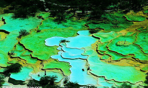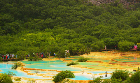 (黃龍風景區(qū)為龍形的一條溝,溝內有兩條棧道,一條上山棧道,一條下山棧道。黃龍景區(qū)所有景點位于下山棧道兩邊)