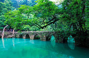 早餐后,游覽大七孔景區(qū)(含保險,不含游船,游覽1.5H,掛牌價:60元)—恐怖峽、妖風洞、天生橋:大七孔景區(qū)是以原始森林、峽谷、伏流、地下湖為主體的景區(qū),景觀峻險神奇、氣雄峻磅礴,尤其是風神洞、恐怖峽、地峨宮景點,洞中有瀑,瀑下有湖,湖上有天窗,陽光投下形如月星斗,極富驚險性、神秘性、奇特性。高百米、寬數(shù)十米跨江而的天生橋被專家們?nèi)笧椤按笞匀簧窳λ茉鞏|方凱旋門”,觀之令人肅然起敬,為大自然神力所折服;游覽地球同一緯度絕無僅有的巖溶地貌的小七孔景區(qū)(含電瓶車,游覽2.5H,掛牌價:155元):龜背山原始森林-68級響水瀑布-拉雅瀑布-鴛鴦湖(游船自理)-水上森林:小七孔風景區(qū)以精巧、秀美、古樸、幽靜著稱,景區(qū)移步換景,布局緊湊。有著名的七孔古橋、68級響水河瀑布、拉雅瀑布、龜背山原始森林、野豬林漏斗森林、天鐘洞臥龍河生態(tài)長廊等景點,更有掩映在森林之中的鴛鴦湖。鴛鴦湖秒大小兩個天然湖泊相連而成,大小湖這間有長約700米的“水上林蔭”,兩岸秀木枝蔓成棚。湖區(qū)濃蔭四匝,水鳥相呼,境界幽絕,置身其間,有如仙境;游畢返回貴陽。晚餐后觀看我社贈送大型原生態(tài)歌舞表演——《多彩貴州風》,《多彩貴州風》是集多民族的風情為一體,囊括了漢族,苗族,布依族,侗族,彝族,仡佬族,水族……等眾多民族的優(yōu)秀代表性節(jié)目,其中有獲得國家級獎項的藝術精品,有來自田間地頭的原生態(tài)的民間藝術瑰寶,有從遠古一直流傳到今天的民族習俗,有神秘莫測、令人震撼的民間絕技……,原滋原味的貴州特色民族文化給你展示一個樸素、華麗、原始、現(xiàn)代的多民族大省所具有的深厚的文化底蘊和無限精彩的民族風情,這將給你的旅途勞頓送去一份輕松的享受。