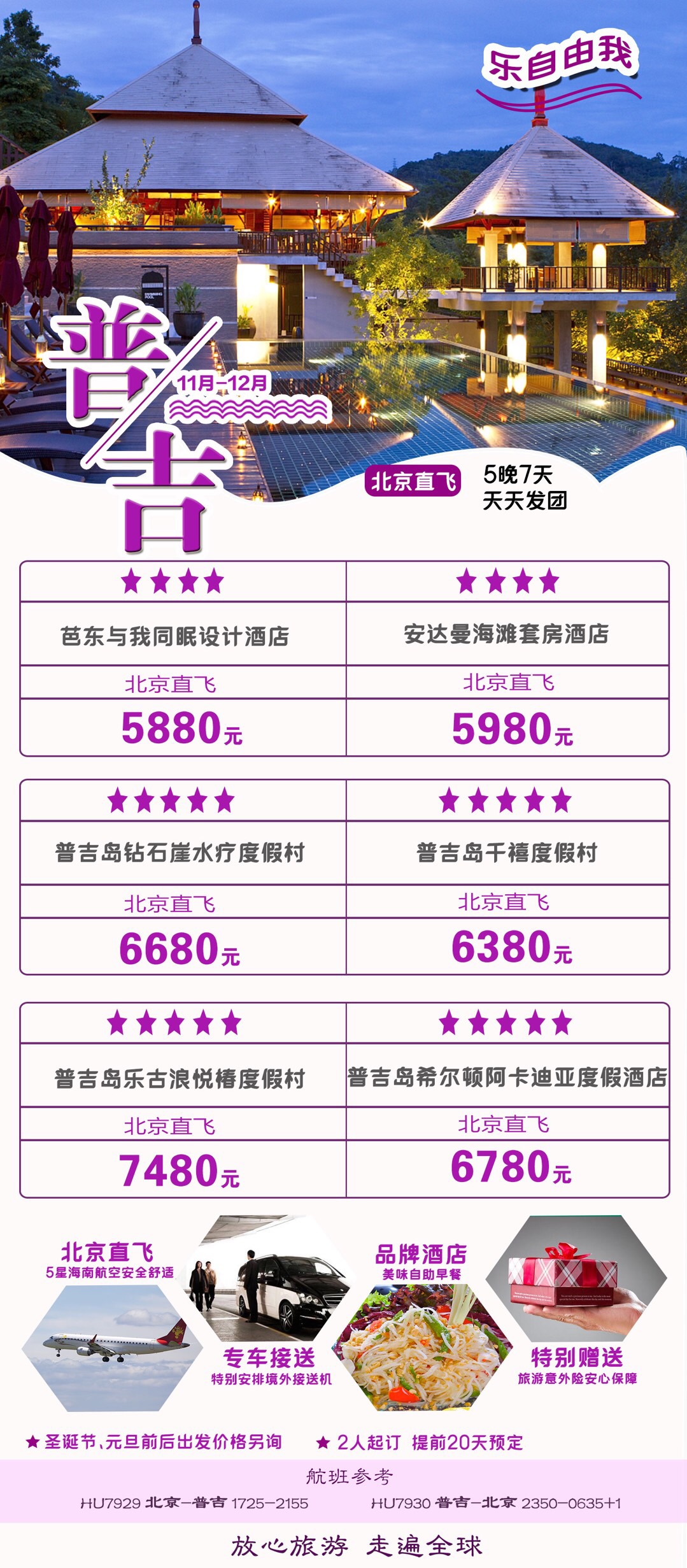 北京往返普吉機(jī)票(海航)+當(dāng)?shù)?~5星級(jí)酒店