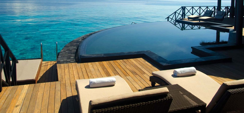 豪華水上棚屋展示了優(yōu)雅和獨特之傳統(tǒng)味道,時尚而成熟。樸素而又典雅的設計,這些棚屋將讓您觀賞到印度洋全景。它擁有兩間臥室、游泳池、桑拿和蒸氣浴室,極可意浴缸、私人餐飲區(qū),寬敞的休閑室還有 40 寸液晶電視和私人大太陽床,另有帶來極致享受的額外配套設施:Ploh 浴袍、床單和浴巾。