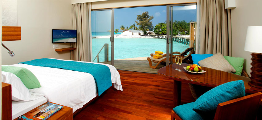 個內(nèi)設(shè)豪華水上別墅設(shè)置高于清澈透明的海水,提供寬敞的總居住面積42平方米和一套帶家具的陽臺??梢赃x擇大床或者雙床房,*多能住2成人+1小孩,可以從階梯直接走到海里。每個別墅套房設(shè)施享有露天淋浴,單獨控制空調(diào)、吊扇、平面屏幕電視與國際電視頻道和節(jié)目,DVD播放器、迷你吧、茶和咖啡制造設(shè)施、保險箱、吹風(fēng)機、IDD電話線路和免費無線上網(wǎng)。