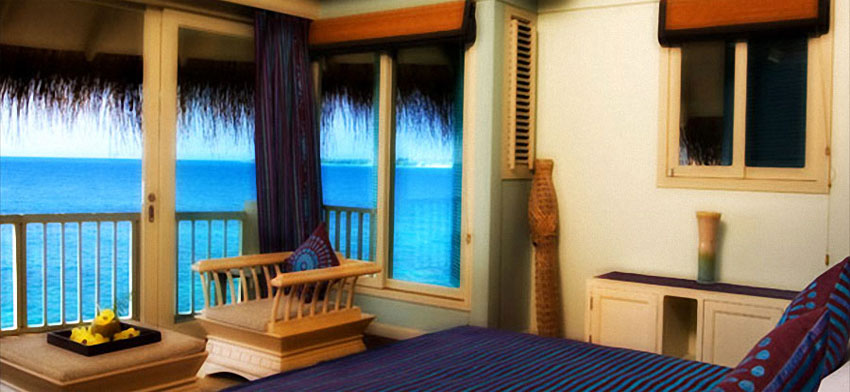 水上屋分為上下兩層,仿如身在豪華游艇內(nèi),航向美麗的海洋。房?jī)?nèi)裝飾高雅, 高級(jí)的木質(zhì)地板加上傳統(tǒng)的馬爾地夫式的茅草蓋屋頂, 樓下是舒適的客廳休息室區(qū)以及衛(wèi)浴間,并且多了一個(gè)Jacuzzi,樓上是優(yōu)雅的臥室,可提供管家服務(wù)。