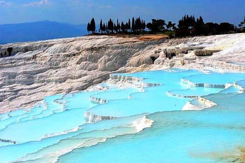 棉 花 堡  棉花堡:遠近聞名的溫泉度假勝地,此地不僅有上千年的天然溫泉,更有這種古怪的好似棉花一樣的山丘。美麗的傳說與美麗的景色,可謂天作之合。