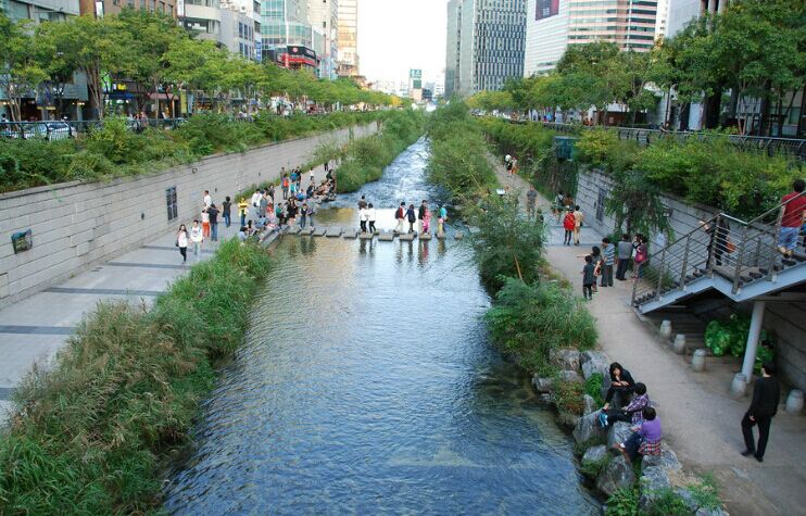 【清溪川】(約30分鐘)清溪川貫穿首爾南北,見證百年滄桑。近年水溝整治后,已被修建為了一條秀麗清新的小河,人們可以在岸邊散步聊天。清溪廣場位于清溪川源頭,標(biāo)志物是個(gè)形似海螺或是筍尖的雕塑,伴隨著溪水淙淙,意喻著新生。清溪川四周設(shè)立了很多文化空間,雕塑、繪畫、小橋都是拍照留念的不錯(cuò)景觀。
