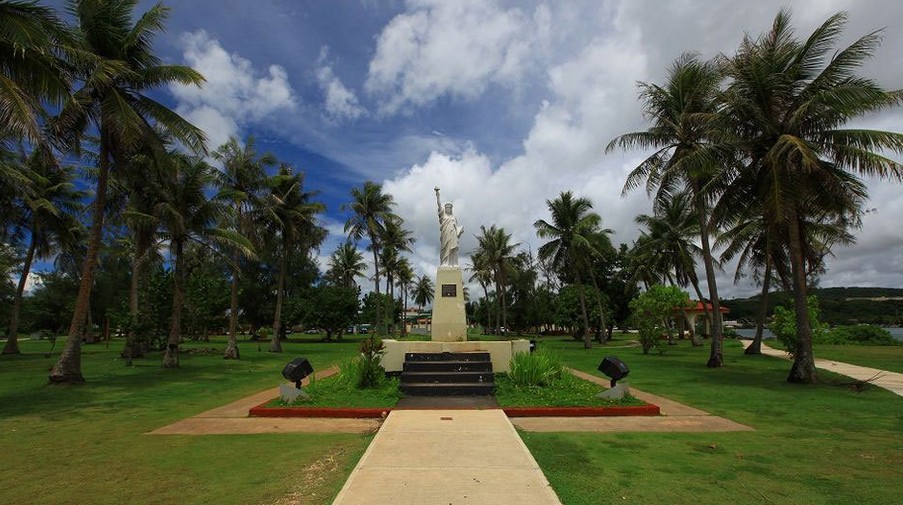 關(guān)島市區(qū)觀光:美國自由神像,自由女神像矗立在 Paseo de Susana 廣場前端,近旁是阿加納游艇碼頭。這座自由女神像是 1950 年由美國童子軍捐贈的紐約自由女神像的復(fù)制品,體積小了很多,而且為了配合當(dāng)?shù)卦∶竦哪w色而漆成古銅色,讓當(dāng)?shù)厝藗涓杏H切。圣母瑪利亞大教堂,圣母瑪莉亞教堂位于關(guān)島第一座天主教堂舊址。1669 年由帕德.圣維多利斯指導(dǎo)興建。正中央安置著傳奇的卡瑪琳女神的雕像 。 據(jù)說該雕像被漁民發(fā)現(xiàn)時,是由三支巨大的螃蟹背負(fù)著,一只背負(fù)著女神像,另二只則是各背負(fù)著一只蠟燭.還有,該神像的頭發(fā)每年都會生長.信徒每年皆會將該神像隆重的送回至梵諦岡.每星期日上午有許多人在此做禮拜。西班牙廣場,原為西班牙統(tǒng)治時期的總督官邸,現(xiàn)列為國家保護級的古跡之一。廣場中央的六角形涼亭是音樂廳,中亭還有一座巧克力屋,為昔日總督夫人宴請貴賓的場所。拉堤石公園,位在西班牙廣場旁的拉提石公園內(nèi)有8根拉提石柱,是從關(guān)島南部的MEPO地區(qū)移過來的,并不是古代建筑遺址。情人崖:情人崖位于關(guān)島杜夢灣北端突出的海崖,情人崖的斷崖的海拔有123公尺高,在情人崖上修筑了觀景臺,在觀景臺上可以利用其絕佳的眺望角度,可以覽盡整個杜夢灣優(yōu)美的海岸線,還可眺望菲律賓海的一望無際的海面。晚餐自理,然后入住酒店休息。