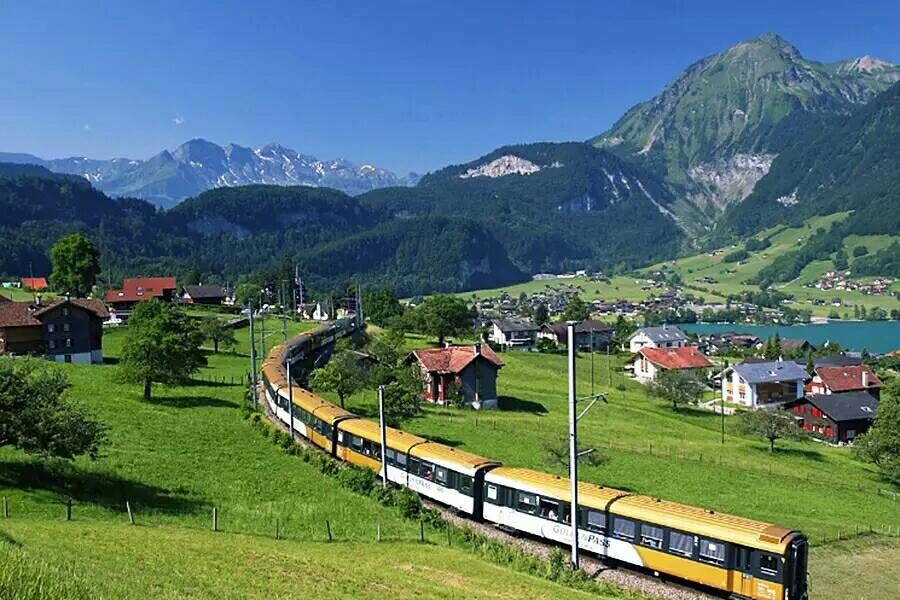 酒店早餐后,前往琉森火車(chē)站,乘坐瑞士知名的★金色山口列車(chē)。兩種語(yǔ)言、三個(gè)世界、六個(gè)湖泊、一條線(xiàn)路:這就是金色山口線(xiàn)路。在金色山口快車(chē)上坡時(shí)能捕捉到葡萄園和花園,漸行漸遠(yuǎn)的列車(chē),回眸再看一次日內(nèi)瓦湖、隧道........金色山口快車(chē)是將日內(nèi)瓦湖、圖恩湖、布里恩茨湖和琉森湖等瑞士風(fēng)光*美的湖泊連接在一起的引人入勝的線(xiàn)路。