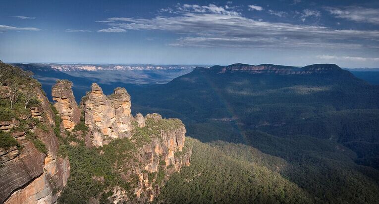 【藍(lán)山國(guó)家公園】:座落在新南威爾士州境內(nèi),距離悉尼市區(qū)約100公里,海拔1000 – 1200公尺。藍(lán)山全地區(qū)生長(zhǎng)著龐大的原始森林和亞熱帶雨林,里面有90種不同品種的尤加利樹(shù)及超過(guò)400種的動(dòng)物種類(lèi)。藍(lán)山總是被一層淡藍(lán)色遮蔽,顯得異常美麗,亦透著神秘,藍(lán)山也因此得名。