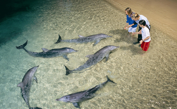 每天傍晚,天閣露瑪寬吻海豚會(huì)急切地游到海灘,在燈光明亮的碼頭旁邊,等待海豚護(hù)理人員和度假村的客人給它們喂食新鮮的魚兒。無論是親身參與喂食海豚,還是僅僅站在碼頭上觀看,都會(huì)被這些美麗的造物所感動(dòng)。