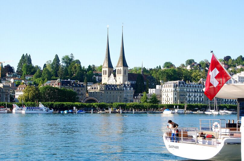 酒店享用早餐后,乘車前往瑞士第一度假小鎮(zhèn)——因特拉肯。抵達(dá)后,搭乘瑞士第一景觀列車——【金色山口列車】前往風(fēng)景優(yōu)美的琉森。抵達(dá)后前往【琉森湖】參觀(時(shí)間共不少于20分鐘),因?yàn)檫@美湖,湖畔古城琉森有了“湖畔巴黎”的別名,獨(dú)具特色的【教堂橋】(參觀時(shí)間不少于20分鐘),是斜跨在河面上的一座二百余米的木制長(zhǎng)橋,又稱“廊橋”。參觀丹麥雕塑家特爾巴爾森設(shè)計(jì)的【獅子雕像】(參觀時(shí)間不少于20分鐘),聽瑞士雇傭軍在法國(guó)戰(zhàn)爭(zhēng)中的感人故事,祈求世界和平。后自由活動(dòng)(時(shí)間約3小時(shí))。晚前往酒店入住休息。為方便游玩,午、晚餐請(qǐng)客人自理。