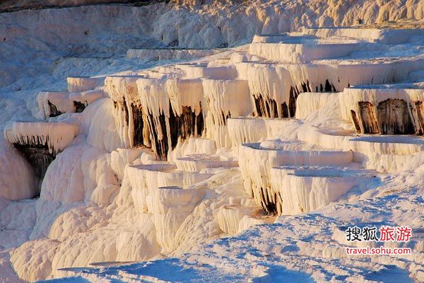 早餐后前往帕姆卡萊(Pamukkale)(行車(chē)約2.5小時(shí))參觀土耳其著名度假區(qū),天然奇景的—棉花堡(約1小時(shí))。抵達(dá)后游覽“棉花堡”,它是遠(yuǎn)近聞名的溫泉度假勝地,此地不僅有上千年的天然溫泉,更有這種古怪的好似棉花一樣的山丘。遠(yuǎn)望猶如層層梯田,卻又潔白如雪。大自然的鬼斧神工制造出了如此美妙的仙境。