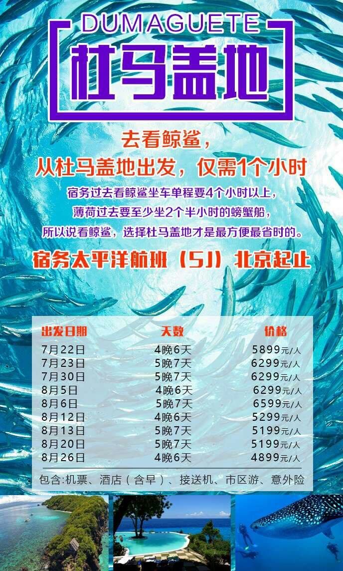 杜馬蓋地4晚6天~5晚7天<機(jī)票の酒店>7-8月計(jì)劃