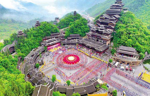 12:30左右乘車(chē)前往享用當(dāng)?shù)靥禺a(chǎn)餐【長(zhǎng)桌宴】午餐后前往游覽【九黎城】(景區(qū)門(mén)票已含90元/人游覽時(shí)間3小時(shí)左右)位于彭水紹慶街道與靛水街道結(jié)合部的亭子壩,2013年開(kāi)始建設(shè),2015年5月開(kāi)游,景區(qū)交通便捷,植被良好,風(fēng)景優(yōu)美,建筑獨(dú)特,是展示和傳承蚩尤九黎文化和苗族文化的圣地,也是我國(guó)目前祭拜人文三大始祖之一蚩尤的地方。景區(qū)重點(diǎn)突出了"自然生態(tài)、民族風(fēng)情、歷史文化"三大特色,集歷史、文化與休閑為一體,目前是世界最大苗城之一。