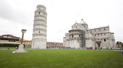 景點(diǎn) 比薩斜塔(意大利語(yǔ):Torre pendente di Pisa或Torre di Pisa)是意大利比薩城大教堂的獨(dú)立式鐘樓,于意大利托斯卡納省比薩城北面的奇跡廣場(chǎng)上。廣場(chǎng)的大片草坪上散布著一組宗教建筑,它們是大教堂(建造于1063年—13世紀(jì))、洗禮堂(建造于1153年—14世紀(jì))、鐘樓(即比薩斜塔)和墓園(建造于1174年),它們的外墻面均為乳白色大理石砌成,各自相對(duì)獨(dú)立但又形成統(tǒng)一羅馬式建筑風(fēng)格。鐘樓始建于1173年,設(shè)計(jì)為垂直建造,但是在工程開始后不久便由于地基不均勻和土層松軟而傾斜,1372年完工,塔身傾斜向東南。由于它的傾斜以及建筑特色使得比薩斜塔有著獨(dú)一無(wú)二的美麗。相傳在公元1590年,伽利略曾經(jīng)在比薩斜塔上做了一個(gè)自由落體實(shí)驗(yàn),并推翻了亞里士多德的觀點(diǎn)。1987年它和相鄰的大教堂、洗禮堂、墓園一起因其對(duì)11世紀(jì)至14世紀(jì)意大利建筑藝術(shù)的巨大影響,而被聯(lián)合國(guó)教育科學(xué)文化組織評(píng)選為世界遺產(chǎn)。近些年來(lái),政府一直在進(jìn)行斜塔的維護(hù)工作。