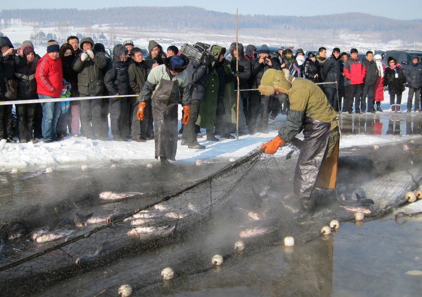 10:00觀看開網(wǎng)捕魚(如遇特殊情況無法觀看恕不提前通知,贈送項目,不參加恕不退費),預示著年年有余。只見千里冰封的湖面上,由漁民鑿開個冰窟窿,開網(wǎng)捕魚,收獲起沉甸甸的大魚與喜悅。鏡泊湖魚生長于冷水環(huán)境、生長周期長,魚肉緊致、口感細膩、味道鮮美,自古以來就是進貢佳品。