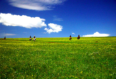 10:30分  左右赴享譽“天上人間”美名的高山草甸--南空中草原風景區(qū)(含40元)(車程約40分鐘左右)空中草原是一個大平頂山的山頂,海拔2158米的山體四周是陡峻的山坡,山頂卻是面積達3.6萬畝、坦蕩如砥、綠草如茵、野花遍地的大草原。習習涼風吹碧?;ɡ?,朵朵白云撫地游走,可"手摸白云天,腳踏花草地"的快感【自愿自費項目:空中草原騎馬】