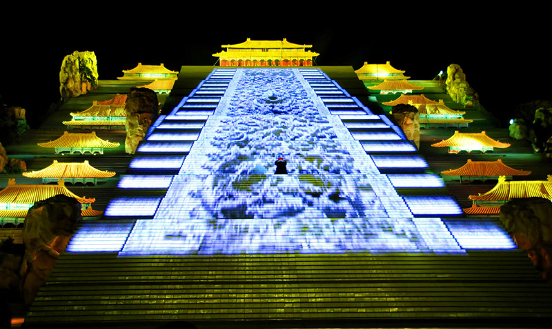 晚餐后觀看大型實景演出《中華泰山?封禪大典》D區(qū))(演出時間70-80分鐘), 山水實景演出以泰山歷史文化為核心,以泰山自然山水為背景,再現(xiàn)歷代帝王封禪泰山場景,演出通過樂舞傳承,跨越時空的界限,一展秦、漢、唐、宋、清歷代封禪大典或祭祀儀式的盛景。演出共80分鐘,以《金戈鐵馬——秦》、《儒風(fēng)雅樂--漢》、《盛世風(fēng)華--唐》、《藝術(shù)王朝--宋》、《康乾盛世--清》五個篇章構(gòu)成。