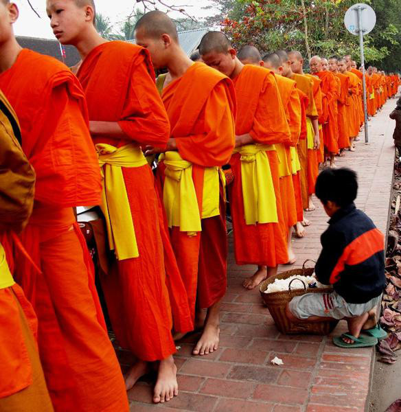 早晨在晨霧中(當?shù)貢r間約5點半)餐觀【僧侶化齋】特色民俗,千年傳統(tǒng)不曾改變,您也可以參與其中。返回酒店早餐后,參觀【皇宮】在前皇宮內(現(xiàn)在已經(jīng)成為老撾國家博物館)可以看到瀾滄王國的遺跡和許多國家級的文物。整個皇宮金碧輝煌,光艷奪目,殿內裝飾古雅華貴。參觀【西瓜塔】。