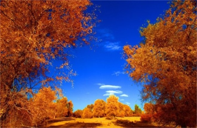 01  南疆胡楊  中國90%的原始胡楊在新疆南疆。輪臺塔里木河畔的胡楊林公園10月-11月上旬,色彩濃郁,一片金黃