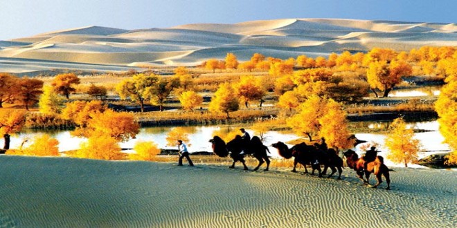 • 新疆南疆庫爾勒 博斯騰湖 輪臺胡楊林公園 塔克拉瑪干沙漠 吐魯番 天山天池雙飛7日游