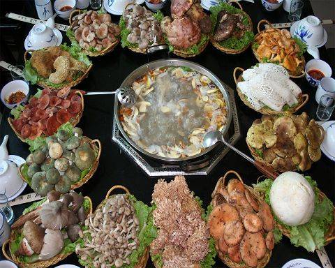 【晚餐菜譜參考】(特色餐廳、野生菌風(fēng)味餐350元/人)土雞野菌湯、野菌八道、(青桿菌、花菇、雙孢菇、茶薪菇、北方菌、黃落傘、包谷菌、木耳)、葷菜四道、(土雞、老肉卷、脊肉卷、火腿)、時蔬六道、(土豆、豆芽、蓮花白、小白菜、小苦菜、金白菜)、主食:薩尼大餅、米飯、面條、水果拼盤。
