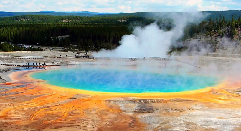 今日一整天,這個奇景迭出魅力無窮的世界上*早的國家公園,從此刻開始,向我們慢慢揭開它神秘的面紗。這里的泉溪溝壑以及瀑布盆地,都印證了大地母親無窮無盡的創(chuàng)造力。我們都將深入黃石公園這個地球秘境,逐一發(fā)現探索這里的奧妙。在黃石公園內的第一站,我們將先來到諾里斯(Norris)景區(qū)(約30分鐘),這里是黃石公園泉水*熱、*活躍、*多變的地區(qū)之一。清晨涼爽的空氣拂面,讓人為之精神振奮。晨霧與地熱構成一幅氤氳的水霧畫,遠遠近近的薄霧圍繞身邊,五彩光暈幻化其中,一路走來幾乎不會有什么人,很有些走入仙境的感覺。接著前往黃石公園內*精華的部分【峽谷區(qū)】(Canyon Country)(約1小時),【黃石峽谷】(Yellowstone Canyon)與【黃石瀑布】(Yellowstone Falls)。在峽谷內健行,眼前的黃石河陡然變急,沖開四濺的水花,形成兩道壯麗的瀑布,轟鳴著泄入峽谷。兩道瀑布沖刷著峽谷巖石,可如油彩般的色彩不會被沖刷褪色,反而在朝霞下更見鮮艷。峽谷區(qū)【Artist Point瞭望臺】,風景優(yōu)美的瞭望臺和交織的黃石峽谷邊緣山路成為峽谷區(qū)(Canyon Country)的主要亮點。離開峽谷區(qū),去觀賞的【泥火山】(Mud Volcano)(約20分鐘),又是另一番景象,平靜時如一潭死水,噴發(fā)時則泥漿涌動,酸霧密布。這里是黃石硫磺濃度*高的區(qū)域,噴發(fā)的洞窟旁邊,形成了一個個硫酸湖,湖邊結著許多黃色的硫磺結晶。游覽【豆?jié){池】(Fountain Paint Pot)(約20分鐘),以及依顏色和水溫而排列的【氣孔噴泉】(AFumarole)(約15分鐘),接著我們將去到【中途景區(qū)】(Midway)(約30分鐘),游覽大棱鏡泉(Grand Prismatic Spring),【七彩池】(Grand Prismatic Spring)是黃石公園的標志性景點,也是眾多彩池中*大的一個。開闊的水面因不同的溫度和菌種,形成極其恣意艷麗的顏色,仿佛是上帝的調色盤一般。而【火洞河】(Firehole River)則呈現出黃黑的顏色,是因為它的河水中含有大量硫物質。*后前往*有名的是老忠實泉(Old Faithful)間歇泉(約1小時),間歇泉區(qū)*好的表現了公園的地熱特征,分為上間歇泉盆地、中間歇泉盆地、下間歇泉盆地。