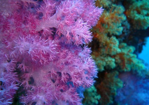 (1)又是一個(gè)清新迷人的早晨,享用過豐盛早餐后;讓我們?cè)俅我燥w翔似的心情投向藍(lán)天碧海的懷抱。經(jīng)過著名的【蜜月灣沙灘】拍照留念后,就來到了【藍(lán)色珊瑚礁】,這里由于發(fā)現(xiàn)了許多珍貴的藍(lán)色鹿角珊瑚而聞名,除了這里之外,很難在其他浮潛點(diǎn)發(fā)現(xiàn)成群的藍(lán)色鹿角珊瑚,除了看藍(lán)色珊瑚,這里還是帕勞名副其實(shí)的魚群狂咬區(qū),站在船上隨手丟一些面包屑,就能引來成群的魚,因此吸引了眾多浮潛愛好者哦!。