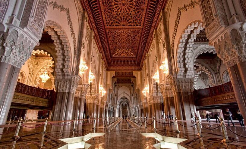 游覽摩洛哥王國(guó)首都拉巴特。首都市區(qū)游覽:參觀【摩洛哥皇家宮殿】(外觀20分鐘)和具有北非建筑風(fēng)格的【麥克蘇爾清真寺】(外觀10分鐘),【烏達(dá)亞斯卡斯巴赫王宮】(約40分鐘),【穆哈穆德5世陵寢】(約20分鐘)和【哈桑塔】(外觀10分鐘)。