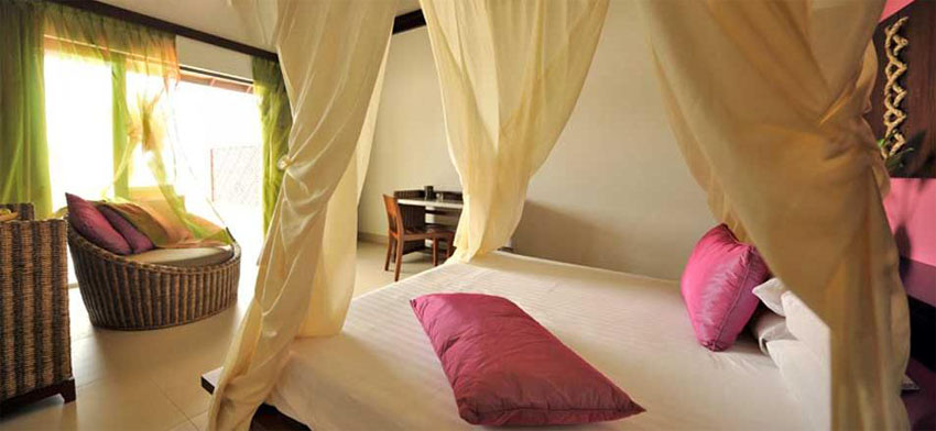 高級房在椰子樹林里,面臨大海,大部分房間配有美麗的海景,有花園??头績?nèi)配置:空調(diào)、吹風機、迷你冰箱、浴室、電話、電視、美式電器插頭/220伏特。