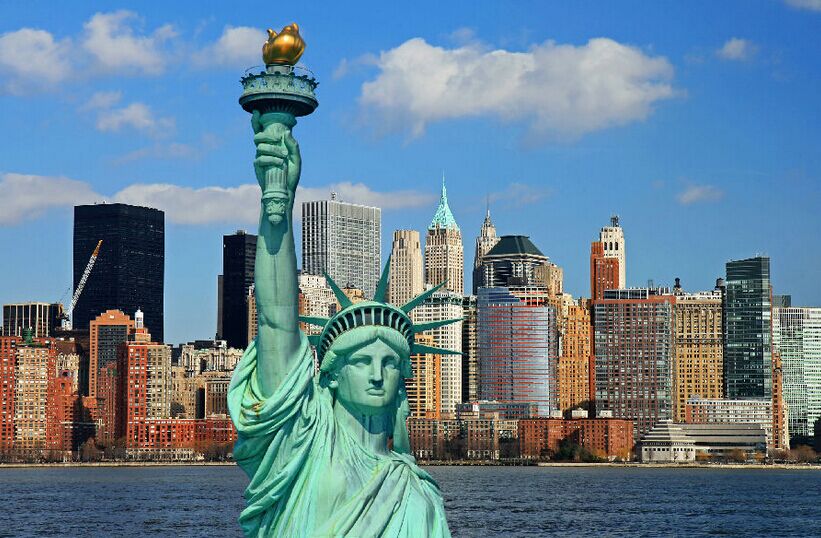【自由女神像】(約1小時)游船高舉火炬的自由女神像象征著美國自由民主精神,她是當年法國為慶賀美國獨立100周年而贈送,神像左手拿著獨立宣言,右手高舉火炬,眼望前方,鼓勵為實現(xiàn)理想而到美國的移民。