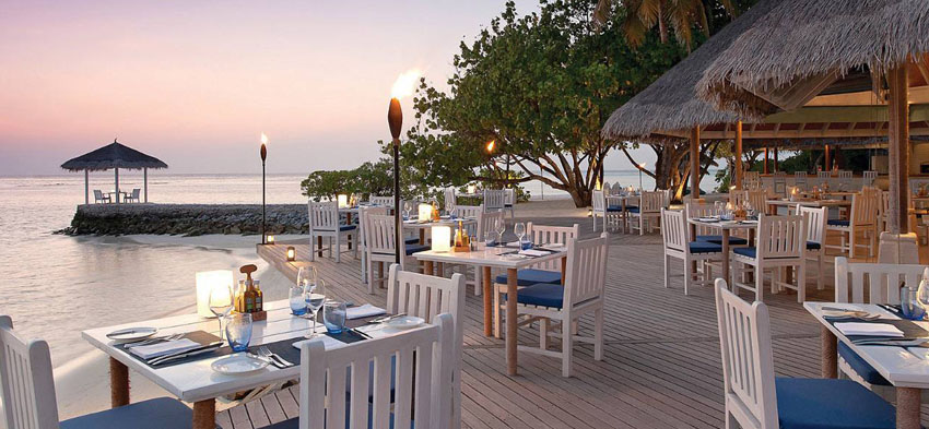 位于泳池邊,開放式的廚房,并且附設(shè)taddoori酒巴,以香檳酒及淡酒為特色,菜單經(jīng)常更換,印度及馬爾代夫口味烹飪,以本地海鮮及米飯為主。每星期日主題之夜。