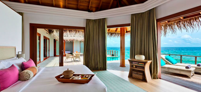 棲息在原始的如綠松石般水域上的海洋別墅,擁有一個寬大的甲板,私人游泳池,大型沙發(fā)床等等。20棟海洋別墅提供了一個184平方米室內(nèi)和室外的生活空間與壯麗的海景。