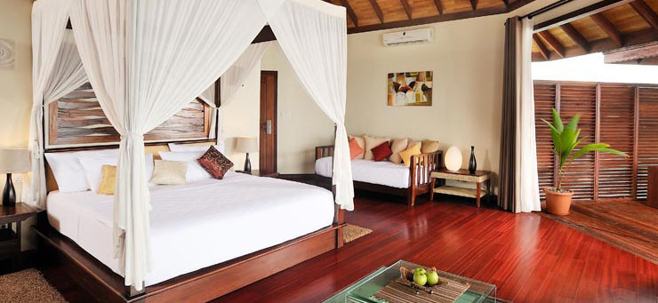 花園別墅(Garden Villa)共50間,面積并不小,裝修并不遜色。只是花園別墅(Garden Villa)造在靠近島頭部的位置,那里生長(zhǎng)著很多高大的椰子樹(shù),酒店開(kāi)發(fā)時(shí)為了保護(hù)這些樹(shù)不砍掉,只好把房間的視野犧牲掉了。
