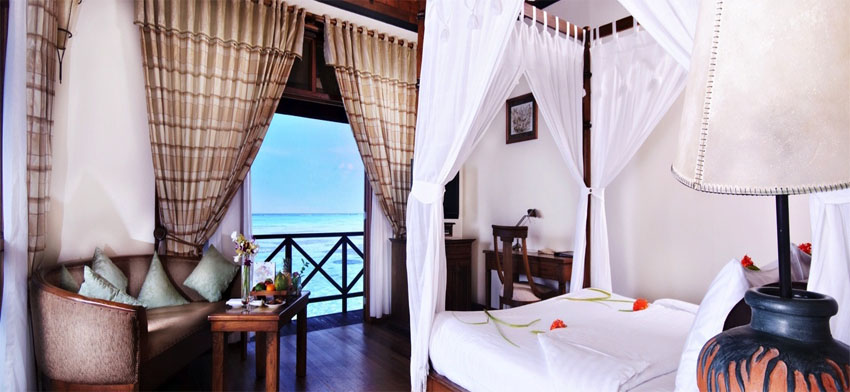 2晚豪華屋Deluxe Room+2晚按摩水上屋Jacuzzi Water Villa ¥7662 早晚餐、快艇