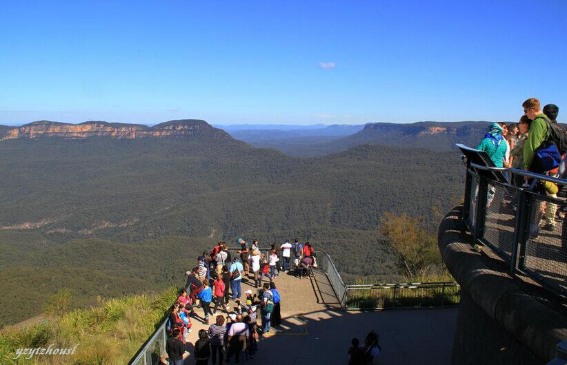 【??平桥c三姊妹峰】觀賞藍山標志性景觀三姐妹峰的*佳位置??平?,命名源于澳洲土著神話的三姊妹峰是3個依在一起的黃褐色的崖頭,造型也頗生動(停留約10分鐘)