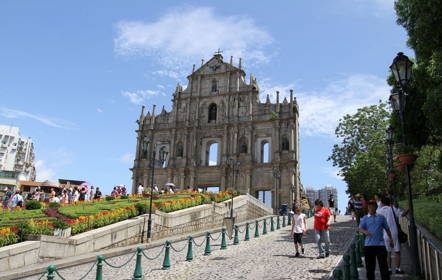 指定時(shí)間集合,由專業(yè)送關(guān)導(dǎo)游接團(tuán),乘車前往碼頭,乘船1小時(shí)前往澳門,抵達(dá)后由領(lǐng)隊(duì)指引經(jīng)過移民局入境澳門。后途經(jīng)門的富人區(qū)主教山(不下車),【媽閣廟】(約20分鐘)澳門*著名的名勝古跡之一,原稱媽祖閣,俗稱天后廟,位于澳門的東南方,枕山臨海,倚崖而建,周圍古木參天,風(fēng)光綺麗,【澳門標(biāo)志大三巴牌坊、炮臺山】(約20分鐘)澳門*具代表性的名勝古跡,為圣保祿大教堂的前壁,此教堂糅合了歐洲文藝復(fù)興時(shí)期與東方建筑的風(fēng)格而成,體現(xiàn)出東西藝術(shù)的交融,雕刻精細(xì),巍峨壯觀。中餐后前往手信店購買各種禮品送給親朋好友(60分鐘,主要經(jīng)營澳門土特產(chǎn)),【澳門九九回歸廣場、盛世蓮花】(約20分鐘)為慶祝1999年澳門主權(quán)移交,于澳門回歸紀(jì)念館展出。