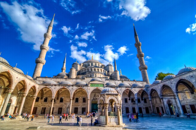 早晨飛往伊斯坦布爾,抵達(dá)后游覽托普卡泊老皇宮(游覽約1個(gè)半小時(shí)),圣索非亞大教堂(外觀15分鐘),藍(lán)色清真寺(游覽約30分鐘),古羅馬競(jìng)技場(chǎng)以及埃及方尖碑(外觀約10分鐘)。隨后入住酒店休息。