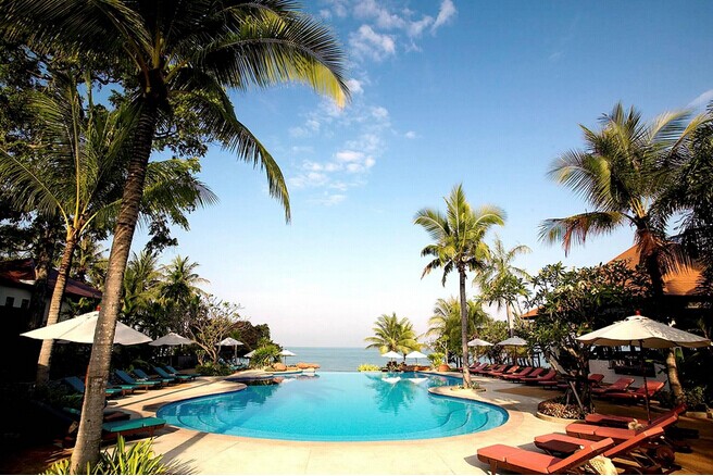 乘快艇出海,藍(lán)藍(lán)的天、碧綠的海,讓您陶醉于大自然的懷抱。【金沙島】有暹邏仙境之稱,美麗的海灣,讓您贊嘆不已。您可以選擇下海游泳,在海灘曬太陽,或者逛逛海邊小攤,樂于冒險(xiǎn)的你更可以自費(fèi)參加降落傘,摩托艇等充滿刺激的活動(dòng)。后前往魅力【金象島】~是暹羅灣中寧靜無污染的天然島嶼,湛監(jiān)的海水、白云般的細(xì)沙,素有“東方小馬爾代夫”之稱。后前往香火*旺盛的古老寺廟【金佛寺】,拜佛求平安。之后前往泰國*具特色的【東芭樂園】,此為景色秀麗的鄉(xiāng)間度假勝地,園內(nèi)有一大型表演場(chǎng),可觀看到泰國傳統(tǒng)民俗歌舞表演,獨(dú)特的泰拳表演及精彩有趣的大象(跳舞、作畫、踢足球)表演。隨后前往【四合鎮(zhèn)水鄉(xiāng)】是芭提雅新開放景區(qū),融合了濃郁純樸的泰國鄉(xiāng)村文化氣息,一幢幢古色古香的木雕風(fēng)格泰屋圍建于迂回的河道上而形成風(fēng)情獨(dú)特的水上人家。晚上帶領(lǐng)您充分體驗(yàn)身心放松的泰國國粹之一的【泰式古法指壓按摩】,疏解您連日來的疲勞。